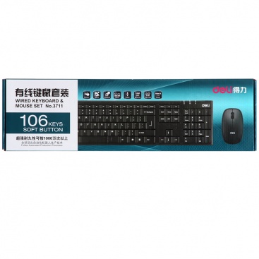 • 商品名稱:得力(deli)薄款有線鼠標(biāo)鍵盤套裝USB鍵盤+鼠標(biāo) 黑色3711
