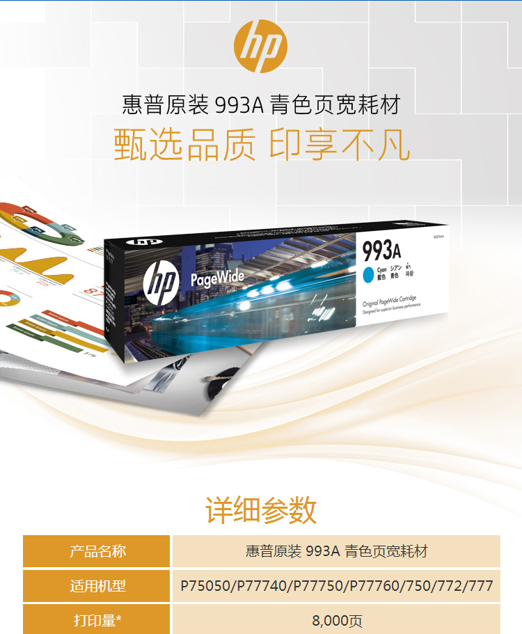 • 商品名稱:惠普 HP 993\993X 原裝頁寬打印機(jī)耗材(適用777z/750dw/750dn) 993X黑色-(約20000頁) 惠普打印機(jī)墨盒 頁寬打印機(jī)耗材