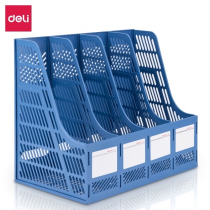 • 得力(deli)四聯(lián)鏤空桌面文件框 四欄帶標(biāo)簽穩(wěn)固文件欄/文件筐/資料框 藍(lán)色9848