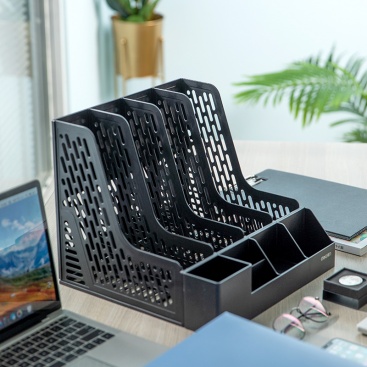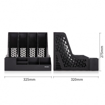 • 商品名稱:得力(deli)四聯(lián)帶筆筒收納桌面文件框 多功能鏤空文件架/文件欄/文件框/資料筐 黑色78981