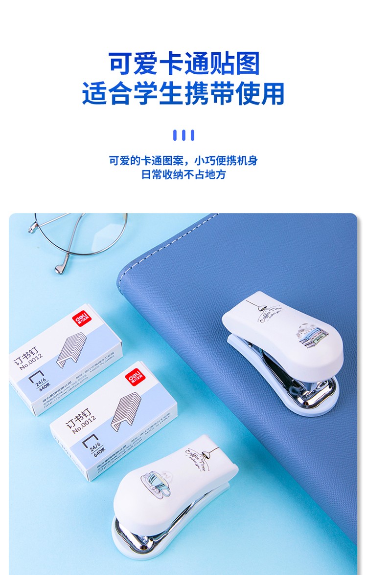 • 得力(deli)12#彩色實(shí)用迷你型訂書機(jī)套裝(訂書機(jī)+訂書針)0352