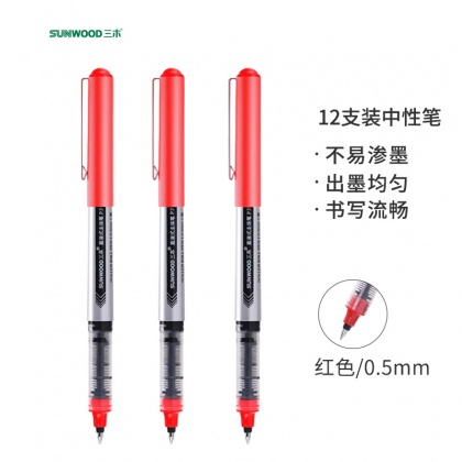 • 商品名稱:三木(SUNWOOD) 12支0.5mm直液式走珠簽字筆學(xué)生考試中性筆 紅色 P7