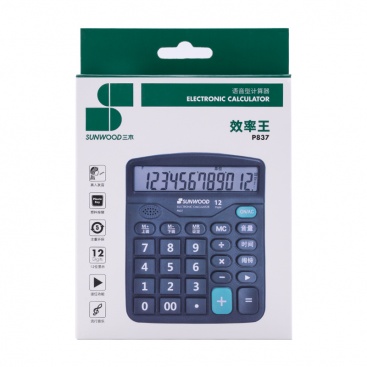 • 三木(SUNWOOD)效率王系列 12位大屏幕語音桌面計(jì)算器/附兩節(jié)7號(hào)電池 黑色 P837