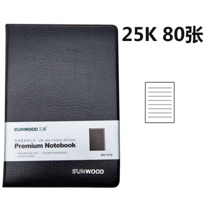 • 商品名稱:三木(SUNWOOD) 25K/80頁高級商務(wù)皮面本/記事本/會議本 黑色 1316