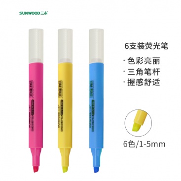 • 三木(SUNWOOD) 高級(jí)多彩熒光筆考試復(fù)習(xí)重點(diǎn)標(biāo)記筆手賬可用水性記號(hào)筆 6支裝 5506