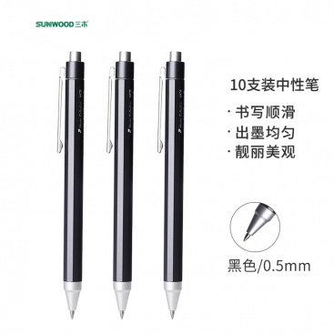 • 商品名稱:三木(SUNWOOD) 名匠系列 10支0.5mm按動式簡約高奢中性筆高質(zhì)感子彈頭書寫筆水筆 黑色 MC8