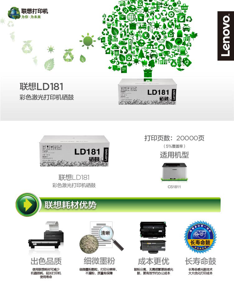 • 商品名稱:聯(lián)想(Lenovo) LD181 原裝彩色硒鼓/墨粉 適用聯(lián)想CS1811聯(lián)想彩色激光打印機(jī)