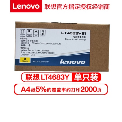• 商品名稱:聯(lián)想(Lenovo) LT4683彩色墨盒 適用C8300NC8300DN C8700DN聯(lián)想打印機 LT4683Y黃色墨盒