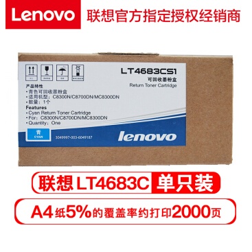 • 商品名稱:聯(lián)想(Lenovo) LT4683彩色墨盒 適用C8300NC8300DN C8700DN聯(lián)想打印機(jī) LT4683C青色墨盒