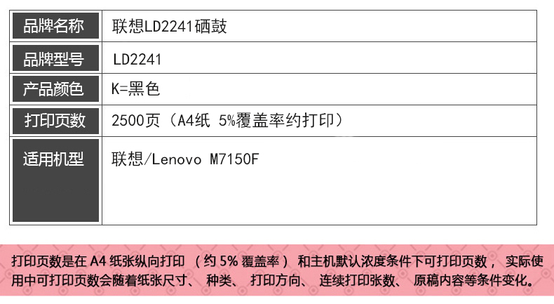 • 商品名稱:聯(lián)想(Lenovo) LD2241硒鼓/墨粉 適用聯(lián)想M7150F 聯(lián)想打印機一體機硒鼓