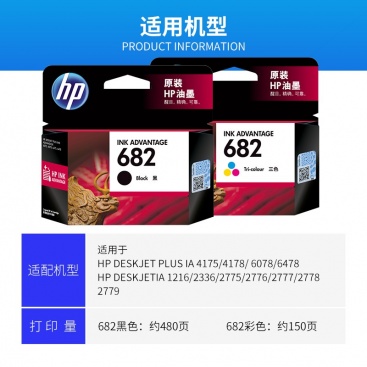 • 商品名稱:惠普(hp)682墨盒2775/2776/2777/2778/2779/4175/4178/6078 682黑色彩色套裝(480頁+150頁)