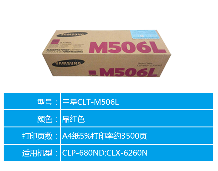• 商品名稱:三星(SAMSUNG) CLT-506S墨粉盒 適用于680ND 6260ND/FR M506L紅色大容(約3500頁)