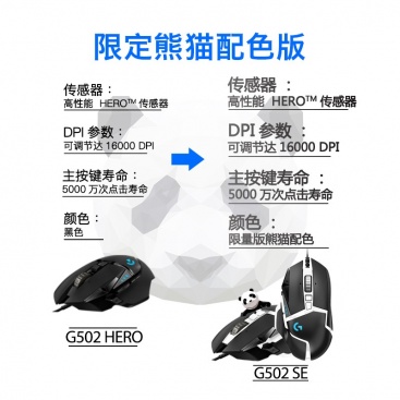 • 商品名稱:羅技(G)G502 SE Hero熊貓版 有線游戲鼠標(biāo) 吃雞鼠標(biāo) 電競鼠標(biāo) RGB炫彩鼠標(biāo) 二年質(zhì)保 羅技G502SE
