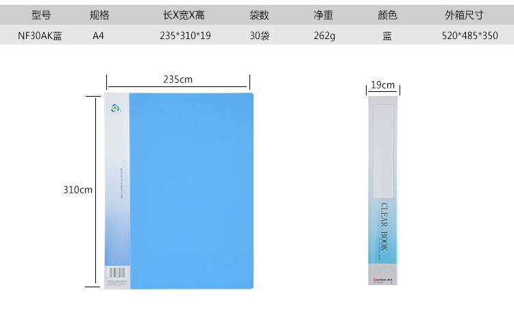 • 商品名稱:齊心(Comix) NF30AK 資料冊/文件冊A4 30頁 藍色