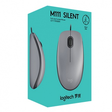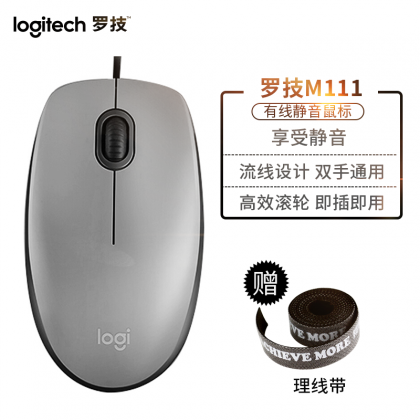 • 羅技(Logitech)M111有線靜音鼠標(biāo)筆記本臺(tái)式機(jī)USB游戲辦公家用光電 灰色