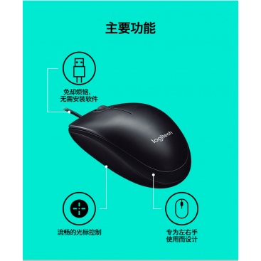 • 羅技 Logitech B100企業(yè)版 USB接口有線鼠標(biāo) 全尺寸左右手通用鼠標(biāo)