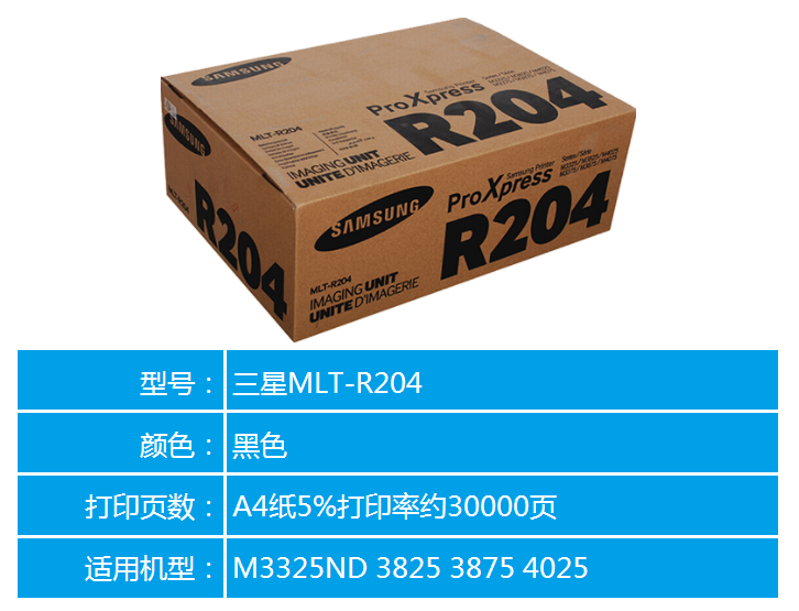 • 商品名稱:三星原裝MLT-D204S粉盒204硒鼓適用于 M3325ND 3825 3875 4025 MTL MLT-R204成像鼓(約30000頁)