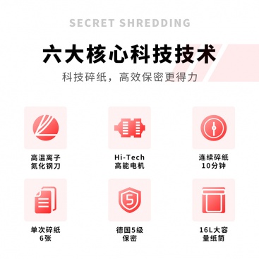 • 商品名稱:得力(deli)5級保密辦公商用碎紙機(單次6張 16L 持續(xù)10分鐘 可碎卡)9954