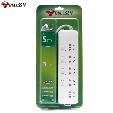 • 商品名稱(chēng):公牛(BULL)新國(guó)標(biāo)插座/插線(xiàn)板/插排/排插/接線(xiàn)板/拖線(xiàn)板 5位分控全長(zhǎng)3米 超功率保護(hù)插座 GN-312