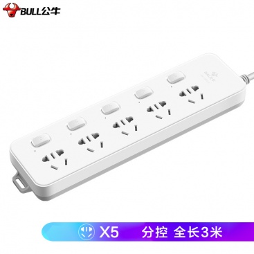 • 公牛(BULL)新國(guó)標(biāo)插座/插線(xiàn)板/插排/排插/接線(xiàn)板/拖線(xiàn)板 5位分控全長(zhǎng)3米 超功率保護(hù)插座 GN-312