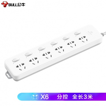 • 公牛(BULL)GN-313 新國標(biāo)插座/插線板/插排/排插/接線板/拖線板 6位分控全長3米 超功率保護(hù)插座