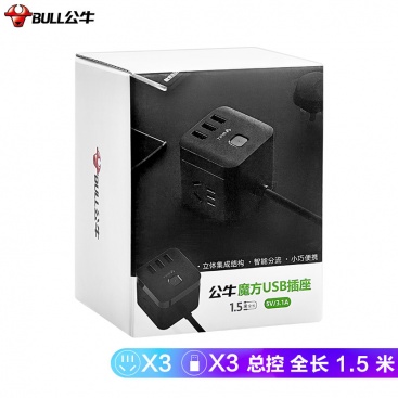 • 商品名稱:公牛(BULL) 智能USB插座/插線板/插排/排插/接線板/拖線板 GN-U303H 黑色魔方USB插座全長1.5米(新升級)