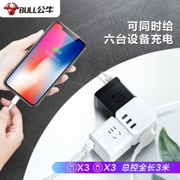 • 公牛(BULL) GN-U303U 魔方USB插座 插線板/插排/排插/接線板/拖線板 3USB接口+3插孔全長 3米