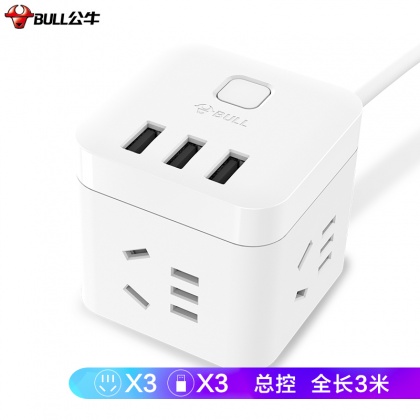 • 商品名稱:公牛(BULL) GN-U303U 魔方USB插座 插線板/插排/排插/接線板/拖線板 3USB接口+3插孔全長 3米