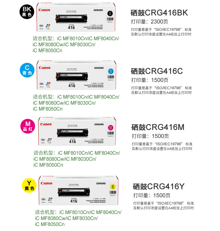 • 佳能(Canon)CRG-416原裝硒鼓(適用iC MF8050Cn 8030cn 8010cn) 佳能CRG416BK黑色原裝硒鼓
