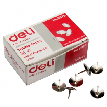 • 商品名稱:得力(deli) 得力0020圖釘 得力圖釘 鍍鎳 金屬大頭釘 圖畫釘 10盒裝