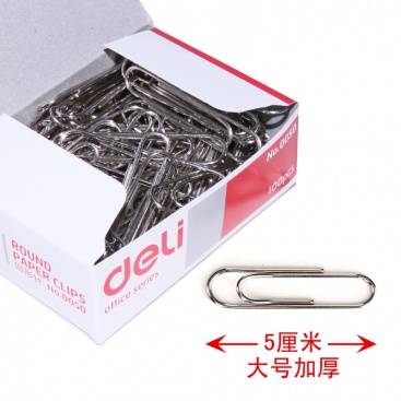 • 商品名稱(chēng):得力(deli) 得力大號(hào)回形針0050 5cm電鍍金屬曲別針 100枚/盒
