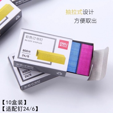 • 商品名稱:得力(deli) 0211 彩色訂書釘 12號#通用訂書釘 24/6可訂25張 10盒裝