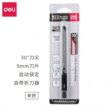 • 商品名稱:得力(deli)2034美工刀小號(hào)學(xué)生耐用30度刀片9mm刀架裁紙刀壁紙刀
