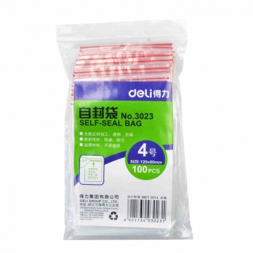• 得力(deli)自封袋 塑封袋子加厚密封包裝袋 透明封口袋 100個/包 4號(12*8cm)3023