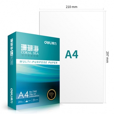 • 商品名稱:得力(deli)珊瑚海 70g A4 復(fù)印紙 中檔款打印紙 500張/包 10包1箱(整箱5000張)
