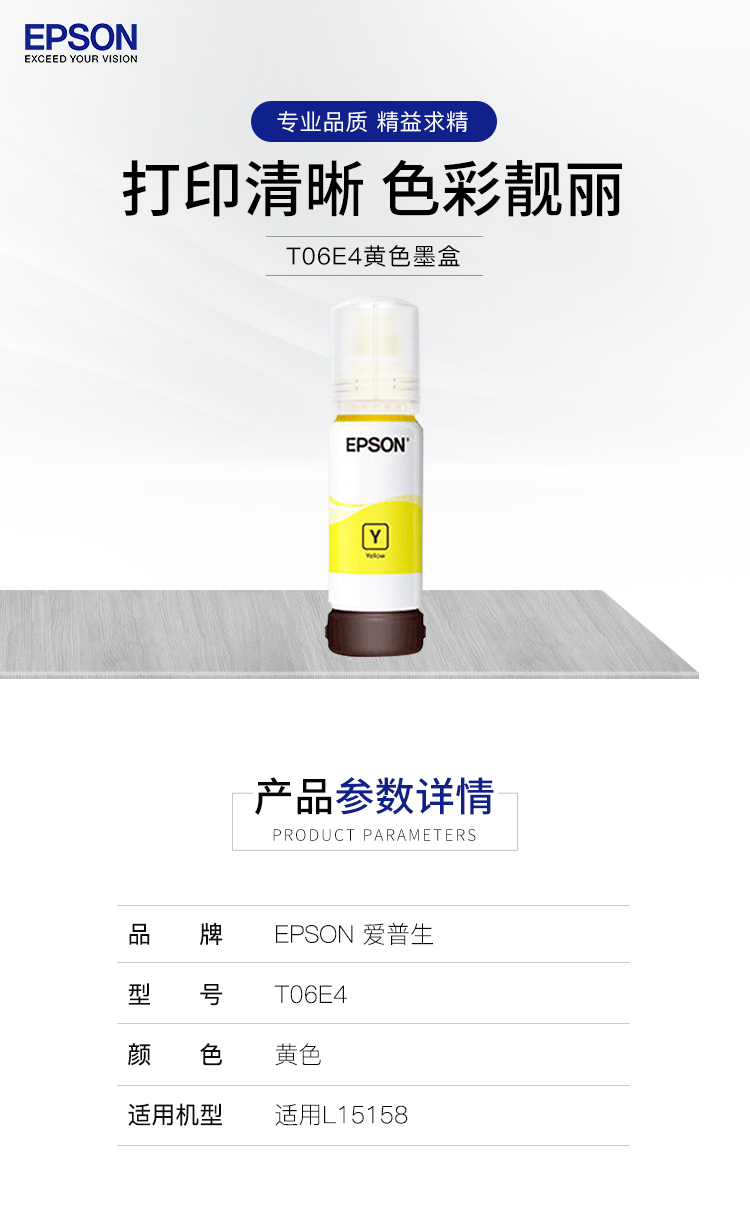 • 商品名稱:愛(ài)普生(EPSON)T06E4 009墨水 適用L15158 L15168 彩色墨倉(cāng)式噴墨打印機(jī) 黃色墨盒(約6000頁(yè))