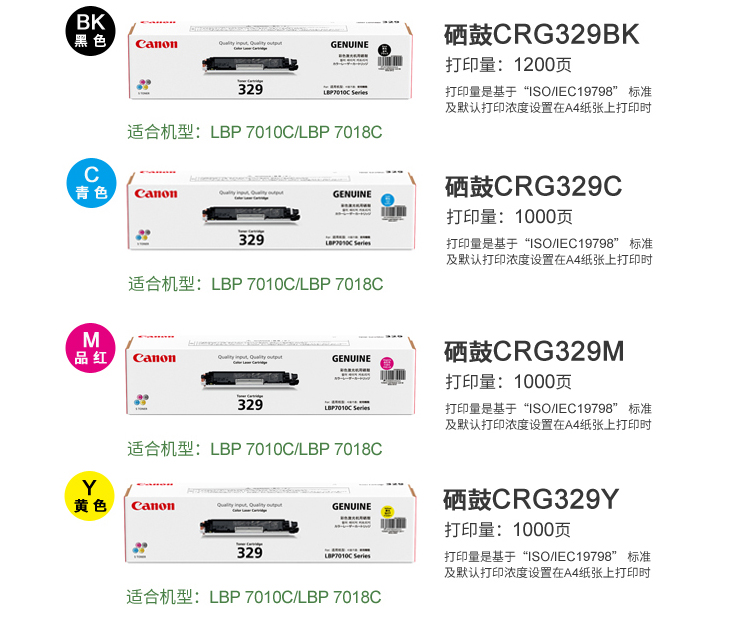 • 佳能(Canon)CRG-329 原裝硒鼓(適用于LBP7010C/LBP7018C) 佳能原裝CRG-329BK黑色粉盒