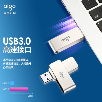 • 愛(ài)國(guó)者(aigo)128GB USB3.0 U盤 U330金屬旋轉(zhuǎn)系列 銀色 快速傳輸 出色出眾