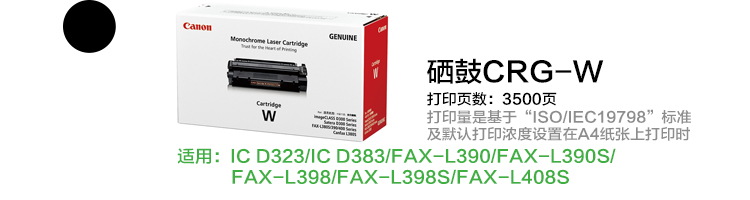 • 佳能(Canon) CRG-W黑色原裝硒鼓 適用 D383 FAX-L390 佳能W黑色原裝雙包硒鼓
