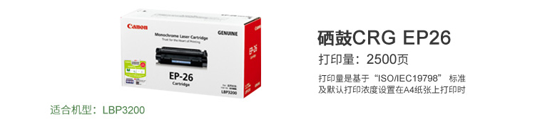 • 商品名稱:佳能EP-26黑色原裝硒鼓 適用LBP3200 佳能26黑色原裝硒鼓