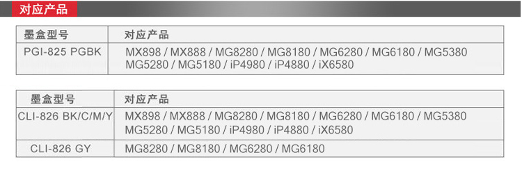 • 佳能PGI-825PGBK黑色墨盒CLI-826彩色墨盒 適用IP4980 IX6580 825+826(六色套裝)