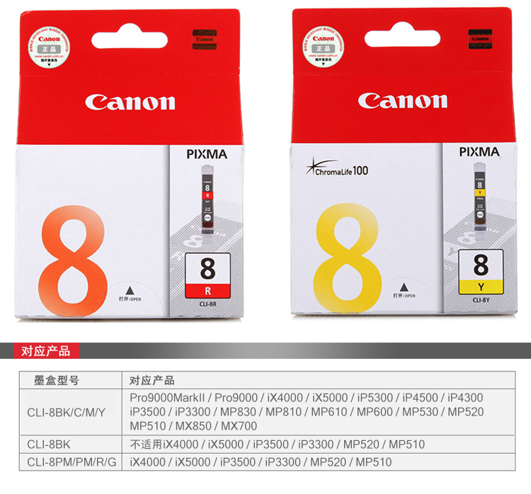 • 佳能PGI-5/CLI-8墨盒 適用IP4500 IX4000 IX5000 MX850 MP830 八色一套(8BK/C/M/Y/G/R/PM/PC)
