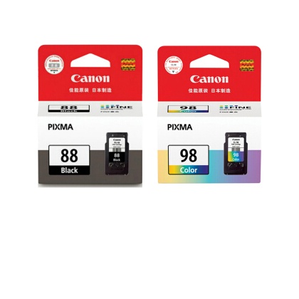 • 佳能(Canon)PG-88黑色墨盒CL-98彩色墨盒 適用于PIXMA E500 佳能打印機(jī) 使用 PG-88黑色+CL-98彩色(套裝)