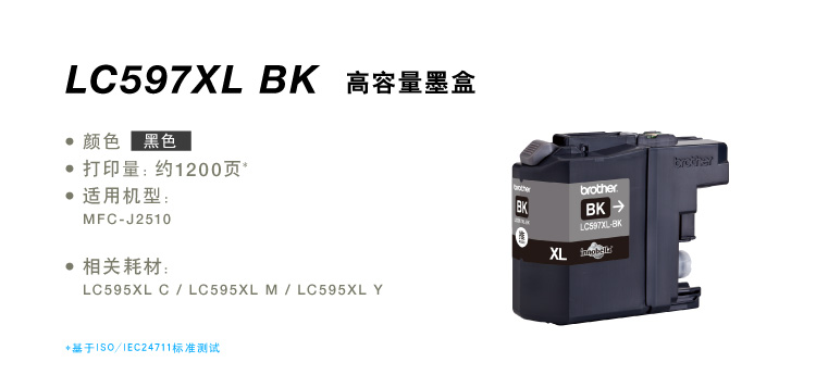 • 兄弟(brother) LC597XLBK 高容墨盒-黑色(適用機型兄弟MFC-J2510)