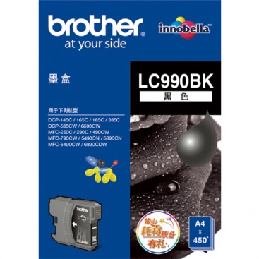 • 商品名稱:兄弟(brother) LC990BK 黑色墨盒(適用DCP-145C/165C/385C/MFC-250C/290C/490CW/790CW/5490CN)
