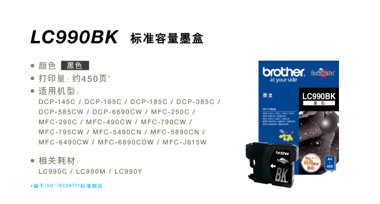 • 兄弟(brother) LC990BK 黑色墨盒(適用DCP-145C/165C/385C/MFC-250C/290C/490CW/790CW/5490CN)