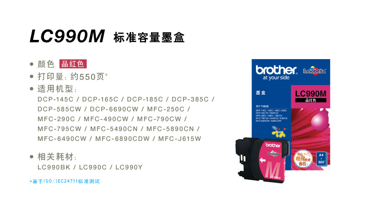 • 商品名稱:兄弟(brother) LC990M 品紅色墨盒(適用DCP-145C/165C/385C/MFC-250C/290C/490CW/790CW/5490CN)