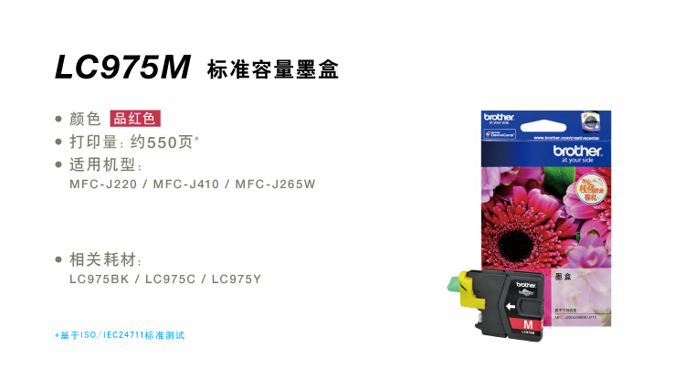 • 商品名稱:兄弟(brother) LC975M 紅色墨盒(適用MFC-J220 J265W J410)