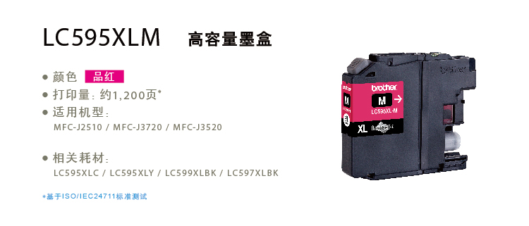 • 兄弟(brother) LC595XLM 高容墨盒-品紅色(適用機(jī)型兄弟MFC-J2510)