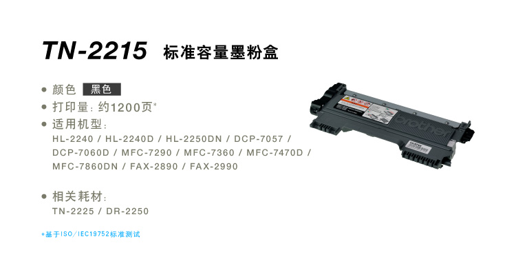 • 商品名稱:兄弟(brother)TN-2215 黑色墨粉盒(適用2240D/7360/7470D/7060D)